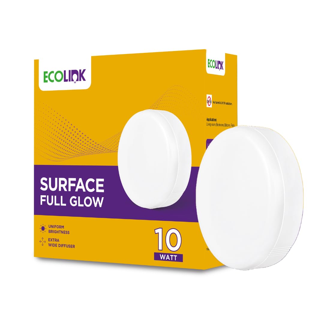EcoLink 10W Surface LED Ceiling Light | Surface Full Glow Ceiling Light for Home & Hall | Surface Lights for Ceiling | Cool Day Light, Pack of 1