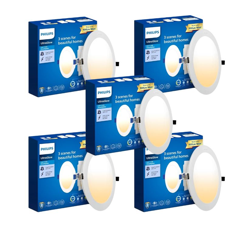 PHILIPS Ultra Glow 10-watt Round LED Downlighter | 3 Colors in 1 Recessed LED Downlight | LED Ceiling Light | Cut Out: 4 inch, Color: Tunable White, Pack of 5-Polycarbonate ₹4,750.00 Original price was: ₹4,750.00.₹4,700.00Current price is: ₹4,700.00.