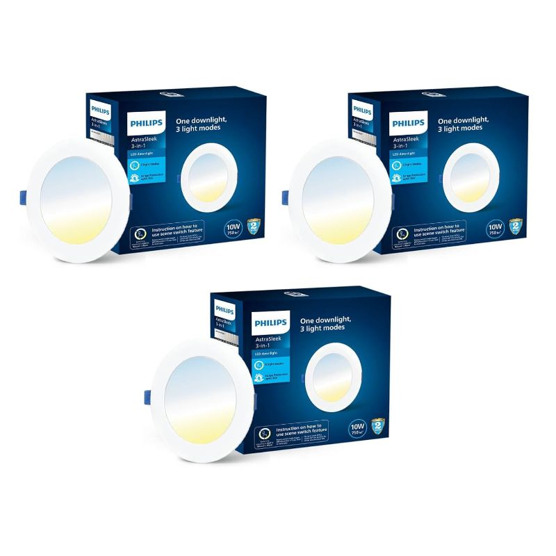 Philips Astra Sleek 10-watt Round LED Downlighter | 3 Colors in 1 Recessed LED Downlight | LED Ceiling Light for Home and Hall | Cut Out: 4.3 inch, Color: Tunable White, Pack of 3 ₹2,499.00 Original price was: ₹2,499.00.₹2,399.00Current price is: ₹2,399.00.